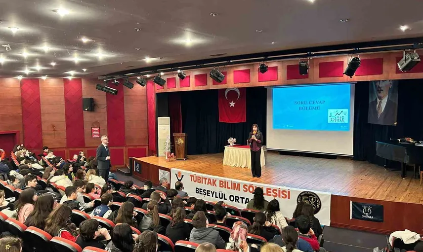 NAZİLLİ BEŞEYLÜL ORTAOKULU'NDA ÖĞRENCİ VE ÖĞRETMENLERİNE YÖNELİK 'TÜBİTAK BİLİM SÖYLEŞİLERİ' ETKİNLİĞİ KAPSAMINDA 'GENÇ YAŞTA FİNANSAL OKURYAZARLIK' KONULU SÖYLEŞİ GERÇEKLEŞTİRİLDİ.