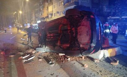 Nazilli'de refüje çarpan otomobil takla atarak karşı şeride geçti