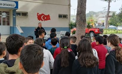 AYDIN’IN NAZİLLİ İLÇESİNDE ŞEHİT CELAL GÜNGÖR ORTAOKULU ÖĞRENCİLERİNE YÖNELİK YANGIN BİLGİLENDİRME SEMİNERİ DÜZENLENDİ.