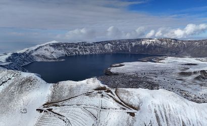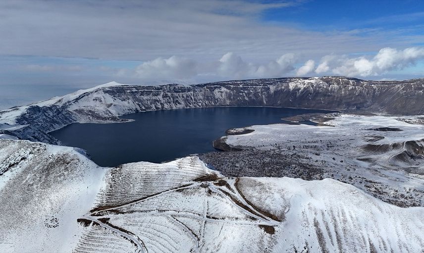 İtli̇s'in Tatvan ilçesinde bulunan Nemrut Krater Gölü, etkili olan kar yağışı ile beyaz örtüyle kaplandı. Avrupalı Seçkin Destinasyonlar projesi kapsamında "Mükemmeliyet Ödülü" alan 2 bin 250 rakımdaki bu doğal harika, ziyaretçilerine kışın eşsiz manzarasını sunuyor.