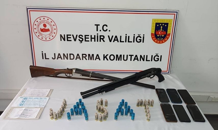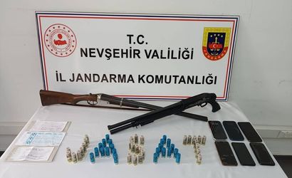Şüphelilerin adreslerinde yapılan aramalarda, 2 ruhsatsız av tüfeği ve usulsüz düzenlenmiş 3 sahte senet ele geçirildi.