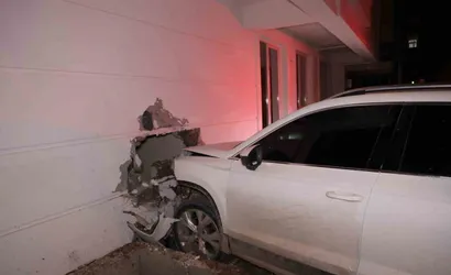 Nevşehir'de polis ekiplerinin 'dur' ihtarına uymayan bir sürücü, otomobiliyle kaçış girişiminde bulunurken bir evin duvarına çarparak durabildi.