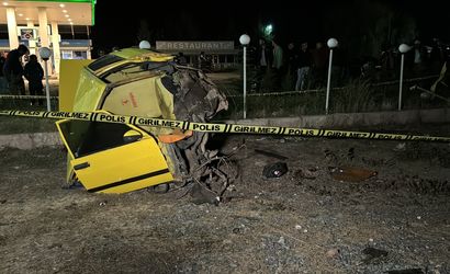 Otomobil yol kenarındaki aydınlatma direğine çarparak ikiye bölündü. Çarpmanın şiddetiyle sürücü olay yerinde yaşamını kaybederken, yanındaki üç kişi yaralandı.