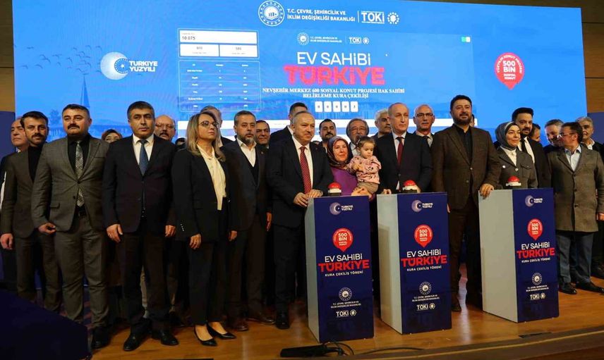 Nevşehir'de TOKİ kapsamında yapımı planlanan 2 bin 368 konutun kura çekilişi, Nevşehir Hacı Bektaş Veli Üniversitesi Vali Şinasi Kuş Kültür ve Kongre Merkezi'nde canlı olarak gerçekleştirildi. Konutlar için toplam 10 bin 75 başvuru yapıldı.