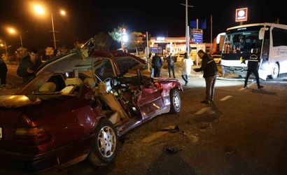 Nevşehir Ürgüp’te turist otobüsü ile otomobil çarpıştı