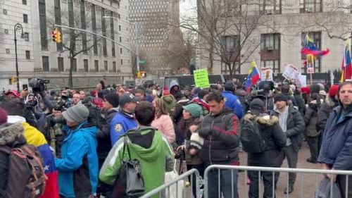 New York’ta Güney Bölge Federal Mahkemesi önünde Maduro ve Cilia Flores için serbest bırakılmaları talebiyle protesto düzenlendi; NYPD güvenlik önlemlerini artırdı.