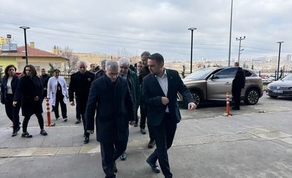 Niğde'de bir hasta tarafından bıçaklanan beyin cerrahı yaralandı. Vali Cahit Çelik (ortada), hastaneye gelerek yetkililerden bilgi aldı.