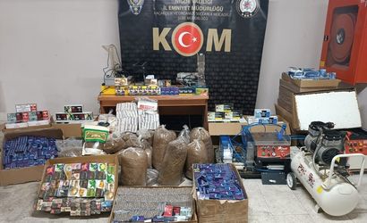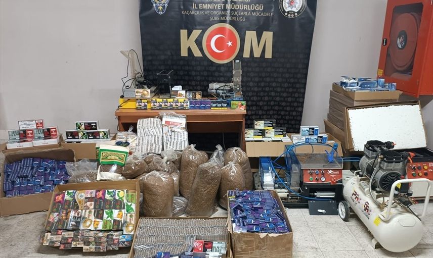 Belirlenen adreslerde gerçekleştirilen aramalarda, 71 bin 100'ü dolu olmak üzere toplam 110 bin 400 makaron, 129 kilogram kaçak tütün ve 4 elektrikli kompresörlü sigara basma makinesi ele geçirildi. Gözaltına alınan iki şüphelinin emniyetteki işlemleri devam ediyor.