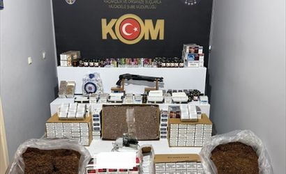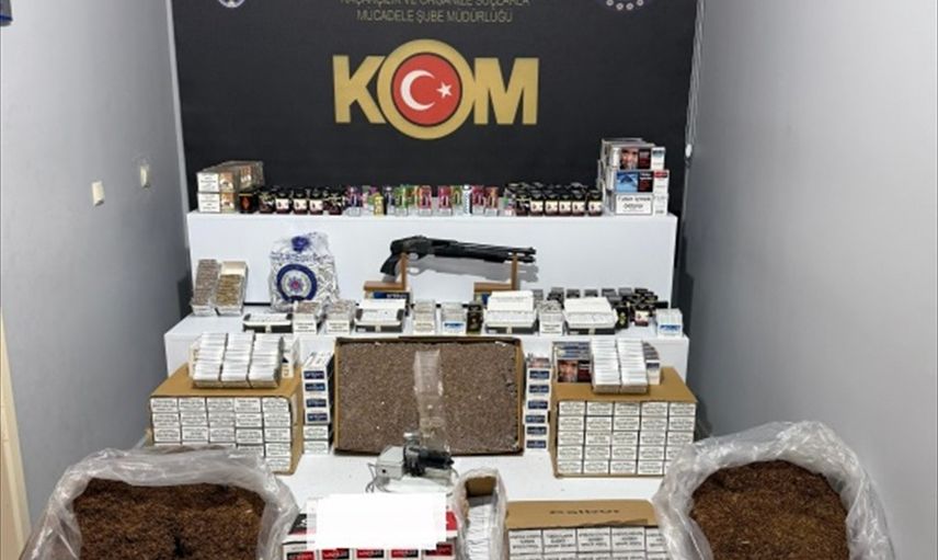 Şüphelilerin ikamet, iş yerleri ve araçlarında yapılan aramalarda ele geçirilenler arasında 131 bin 500 dolu makaron, 1.650 paket sigara, 230 kilogram tütün, 33 kutu sigara paketleme poşeti, 29 paket nargile tütünü, 23 kutu sigara sarma kağıdı, 21 elektronik sigara, bir sigara basma makinası ve bir ruhsatsız av tüfeği bulunuyor.