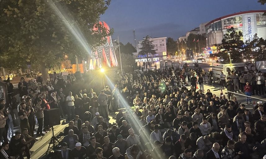 Şehit Ömer Halisdemir Meydanı'nda Türk ve Filistin bayraklarıyla toplanan kentteki çeşitli sivil toplum kuruluşlarının üyeleri, namaz kılıp dua etti ve İsrail aleyhine slogan attı.