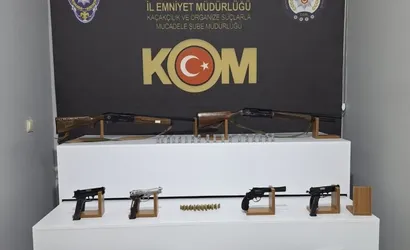 Şüphelilere ait ev, iş yeri ve araçlarda yapılan aramalarda; 4 adet ruhsatsız tüfek, 3 adet ruhsatsız kurusıkı tabanca, 1 adet ruhsatsız tabanca, 4 adet tabanca şarjörü, 37 adet tabanca fişeği, 18 adet tüfek fişeği ile 2 adet kesici-delici alet ele geçirildi.