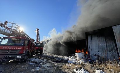 Niğde Organize Sanayi Bölgesinde plastik çerçeve fabrikasında çıkan yangına müdahale ediliyor.