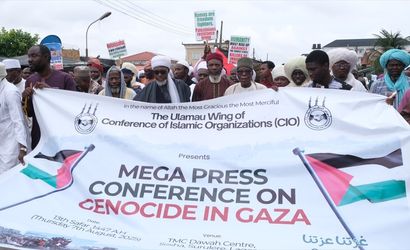 Ülkenin Lagos kentinde, Nijerya'daki İslami Kuruluşlar Konferansı'nın (CIO) öncülüğünde "Gazze Soykırımını Durdurun" başlıklı bir basın toplantısı gerçekleştirildi.
