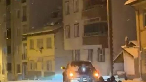 Tokat Niksar'da karla mücadele ekipleri, zorlu vardiya sonrası araç arkasına kurulan düzeneği kullanarak kısa bir mola verip karın tadını çıkardı.