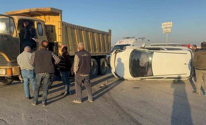 Nizip'te hafriyat kamyonu ile çarpışan otomobil yan yattı: 1 yaralı