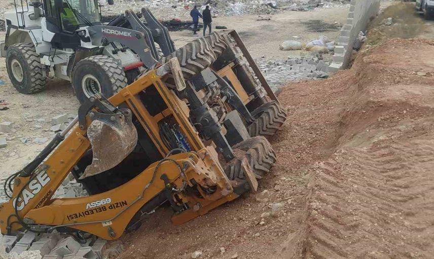 Gaziantep'in Nizip ilçesi Yeşilevler Mahallesi Söğütlü yolundaki yol çalışması sırasında zemin çökmesi yaşandı. İddiaya göre, Nizip Belediyesi'ne ait kepçeyi kullanan Cesim T. kontrolü kaybedince araç devrildi ve operatör yaralandı.
