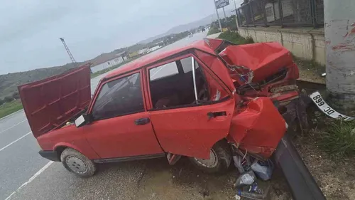 Ödemiş-Kiraz yolunda kaza: Kontrolden çıkan otomobil betona çarptı, 2 yaralı