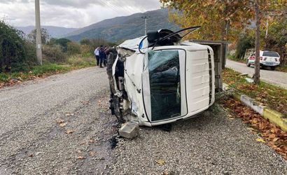 Ödemiş'te traktörle çarpışmayı önlemek için manevra yapan kamyonet devrildi