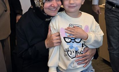 Muğla'da, işitme ve konuşma kaybıyla doğan 7 yaşındaki Özbekistan uyruklu Mubina Khoshimbetova, koklear implant (biyonik kulak) ameliyatıyla sesleri duymaya başladı. AK Parti Muğla İl Başkanlığı Sosyal Politikalar Başkanı Psikolog Tuğçe Kandemir (sol 2), AK Parti Genel Başkan Yardımcısı Fatma Betül Sayan Kaya (sol 3), İstanbul Başakşehir Çam ve Sakura Şehir Hastanesi’nde, Koordinatör Başhekim Prof. Dr. Özgür Yiğit (sağ 4) ve Mubina'nın bakımını üstlenen taksici Bayram Yeter (önde sağ 2) küçük kızı yalnız bırakmadı.
