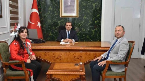Olimpiyat madalyalı judocu Yadigar Talayhan’a Kaymakam Ali Güldoğan’dan plaket