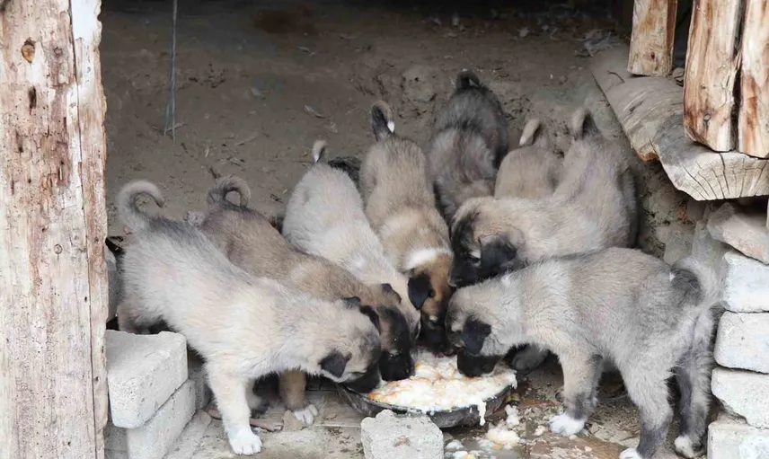 Erzurum'un Oltu ilçesi Halitpaşa Mahallesinde bir sokak köpeği, kullanılmayan eski bir evin çatısında 10 yavru dünyaya getirdi. Yavruların bakımı, bölge sakinlerinin desteğiyle sürüyor; ancak zamanla bakım güçleşti.