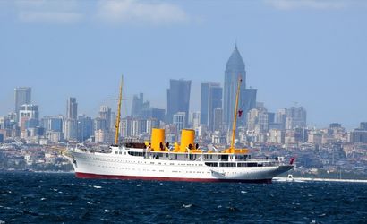 Deniz Kuvvetleri Komutanı Oramiral Ercüment Tatlıoğlu (sol 3), Mustafa Kemal Atatürk'ün "manevi mirası" olarak bilinen ve aslına uygun restore edilen Savarona'da incelemelerde bulundu.