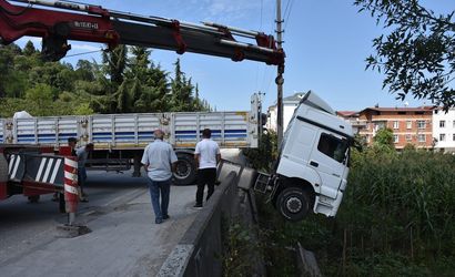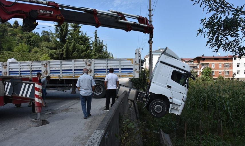 Ordu'nun Altınordu ilçesinde park halindeyken freni boşalan tır duvara çarptı.