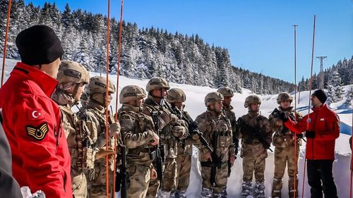 Ordu İl Jandarma Komutanlığı JAK ve komando timleri, 21 Ocak'ta Çambaşı Kayak Merkezi'nde kar altında arama-kurtarma tatbikatı gerçekleştirdi.