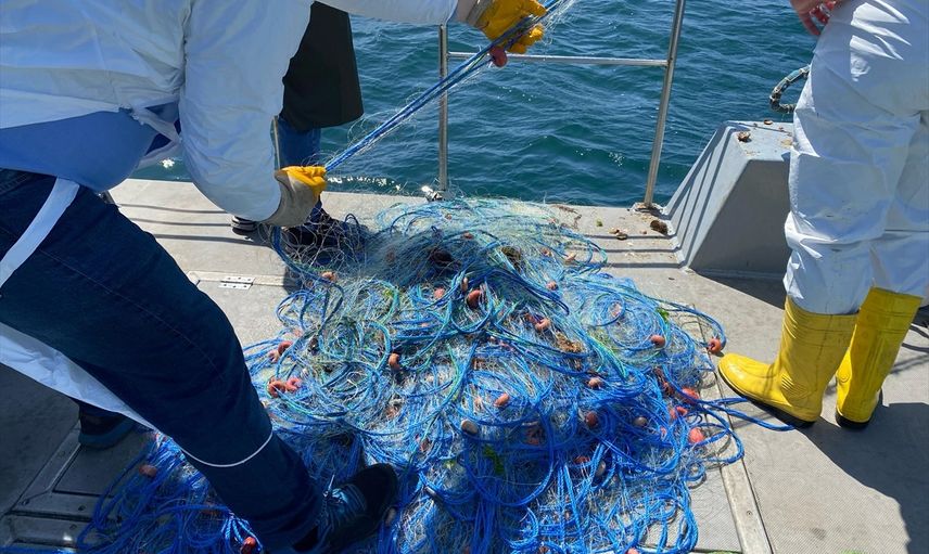 Ordu'da denize kaçak serilen 500 metrelik kalkan balığı ağı ele geçirildi.