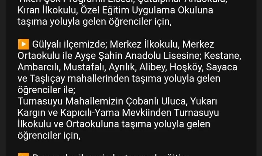 Ayrıca Altınordu, Fatsa, Ünye, Çatalpınar, Gülyalı ve Perşembe ilçelerinde ise eğitim ve öğretime kısmi olarak 1 gün süreyle ara uygulandığı bildirildi.
