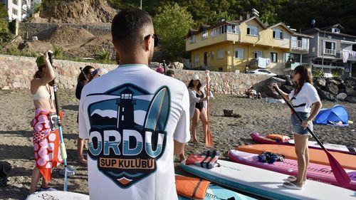 Ordu'da Fatsa sahilinde düzenlenen teorik ve pratik SUP eğitimleri, Karadeniz'in doğal güzellikleri eşliğinde katılımcılara yeni bir su sporu deneyimi sunuyor.