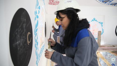 Ordu'da nakkaşlık yapan Ersin ve Kübra Saraç çifti, cami duvarlarını özgün motifler ile süslüyor. 12 yıllık deneyimleriyle Türkiye'yi geziyorlar.
