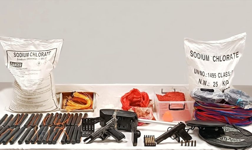 Ordu'da, dinamit ve patlayıcı yapımında kullanılan malzeme ele geçirilen evdeki 2 şüpheli yakalandı. Ekipler tarafından yapılan evdeki aramada, kargo paketlerinin içerisinde 3 kablolu dinamit patlayıcı, 279 kablolu kibrit eczası fünye, 3,70 kilogram ANFO, 35 kablolu dinamit kapsülü, 51 dinamit yapımında kullanılan boru, 11 top kablo, altın arama detektörü, lehim makinesi, 2 boru kesme makası, ruhsatsız tabanca, 5 fişek ile kurusıkı tabanca ele geçirildi.