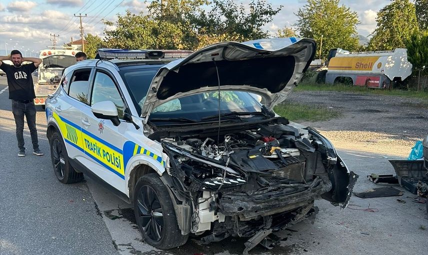 Ordu'nun Ünye ilçesinde hız denetimi yapan polis aracına otomobil çarptı