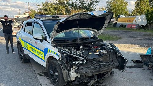 Ordu'da Ünye'de hız denetimi yapan polis aracına otomobil çarptı: 2 yaralı