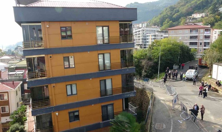 Ordu'da zeminde kayma nedeniyle eğilen 5 katlı binada yıkım hazırlıkları