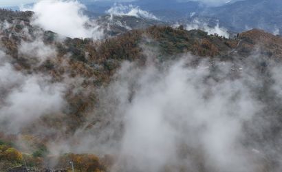Ordu'nun yüksek kesimlerinde sis, Ulubey ormanlarını sonbahar renkleriyle buluşturdu