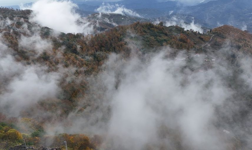 Ordu'nun yüksek kesimlerinde etkili olan sis, sonbahar renkleriyle güzel görüntü oluşturdu.