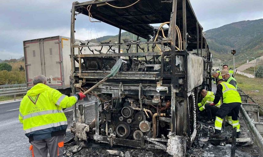 Gebze-Orhangazi-İzmir Otoyolu Orhangazi Tüneli yakınlarında, sabah 08.00 sıralarında Çanakkale’nin Lapseki ilçesindeki Plevne Ortaokulu'ndan İstanbul’a geziye giden otobüste motor bölümünde yangın çıktı.