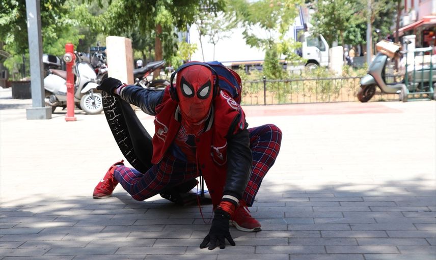 Türkiye'yi 'Örümcek Adam' kostümüyle keşfetme hayaliyle yola çıkan Ayaz Salih Koç (26), İzmir'den başlayarak 66. durağı olan Siirt'te vatandaşlarla bir araya geldi.