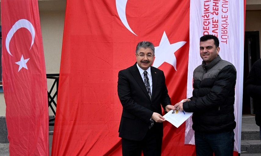 Vali Yılmaz, konuşmasının ardından, hak sahiplerine köy evlerinin anahtarlarını teslim etti.