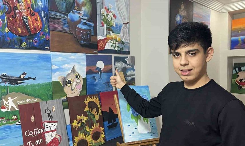 Osmaniye'de 15 yaşındaki otizmli ressam Okan Mert Gönül, sanatla eğitim yolunu açtı