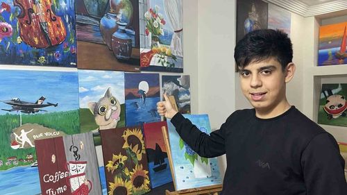 Osmaniye'de 15 yaşındaki otizmli ressam Okan Mert Gönül, sanatla eğitim yolunu açtı