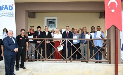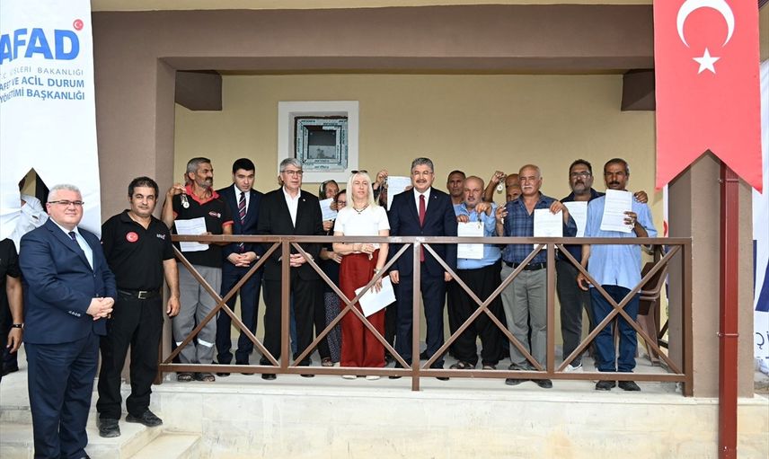 Osmaniye'nin Sumbas ilçesinde yapımı tamamlanan 27 köy evi, törenle hak sahibi depremzedelere teslim edildi.