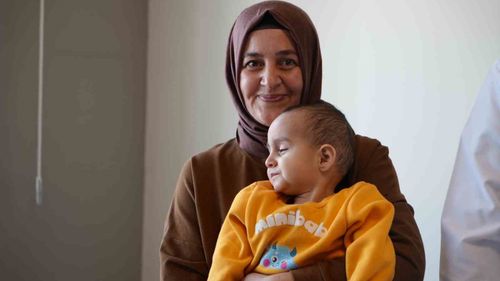 Osmaniye'de doğuştan işitme engelli 14 aylık Hamza Tuğra, Gaziantep Şehir Hastanesi'nde yapılan beyin sapı implantı ameliyatıyla yaklaşık bir ay sonra ilk kez duymayı yaşadı.