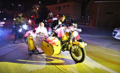 Motosiklet konvoyu eşliğinde düğün salonuna gitmek