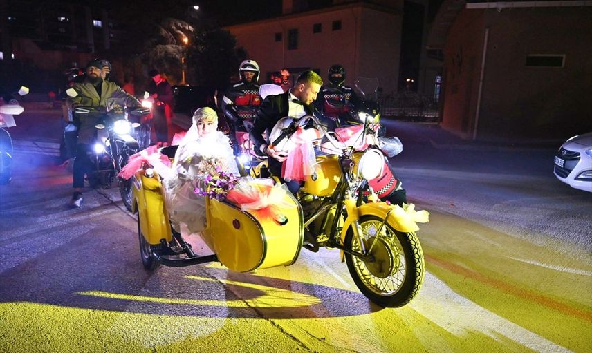 Osmaniye'nin Kadirli ilçesi'nde, Yusuf ve Makbule Nur Dokuzoğlu çifti, 1960 model sepetli motosikletlerini düğün aracı olarak kullanarak dikkat çekti. Düğünlerinde geleneksel bir yaklaşım yerine, motosiklet tutkusunu ön plana çıkaran genç çift, bu özgün seçimiyle misafirlerinin beğenisini topladı.