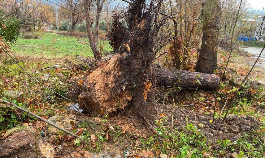Karacaoğlan Mahallesi Muhtarı Mustafa Kıraç, bölgede 2 gündür etkili olan sel ve rüzgarın mezarlıktaki büyük çam ağaçlarının yıkılmasına neden olduğunu belirtti. Kıraç, "Bölgemizde 2 gündür etkili olan sel ve rüzgarın etkisiyle mezarlığımızdaki büyük çam ağaçları yıkıldı. Birkaç çam ağacının devrilmesiyle yol kapandı ve bazı mezarlar zarar gördü. Bakın, bu mezarımızın yanında çam ağacı vardı. Çam sökülünce zaten oradaki toprağı kepçe ile dışarı aldılar. Daha sonra mezarlığımızı yeniden düzelttik. Yıkılan çam ağaçlarından birkaç tanesi mezarların üzerine devrildi. 2 gündür süren yağmur nedeniyle bu çamları kesip kaldıramadık. Bundan 20-25 yıl önce de böyle bir kar yağışı olmuştu ama bu rüzgar çok felaket bir rüzgardı. Yıkılmadık ağaç bırakmadı, zaten ağaçlarımız göz önünde" dedi.