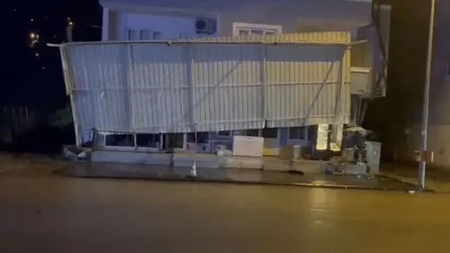 Osmaniye Düziçi'de Sundurma Çatısı Şiddetli Rüzgarla Yerinden Koptu, Belediye Kontrollü Yıktı