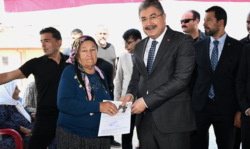 Osmaniye'nin Kadirli ilçesinde yapımı tamamlanan 15 köy evi, törenle depremzedelere teslim edildi. Vali Erdinç Yılmaz, hak sahiplerine köy evlerinin anahtarlarını teslim etti.